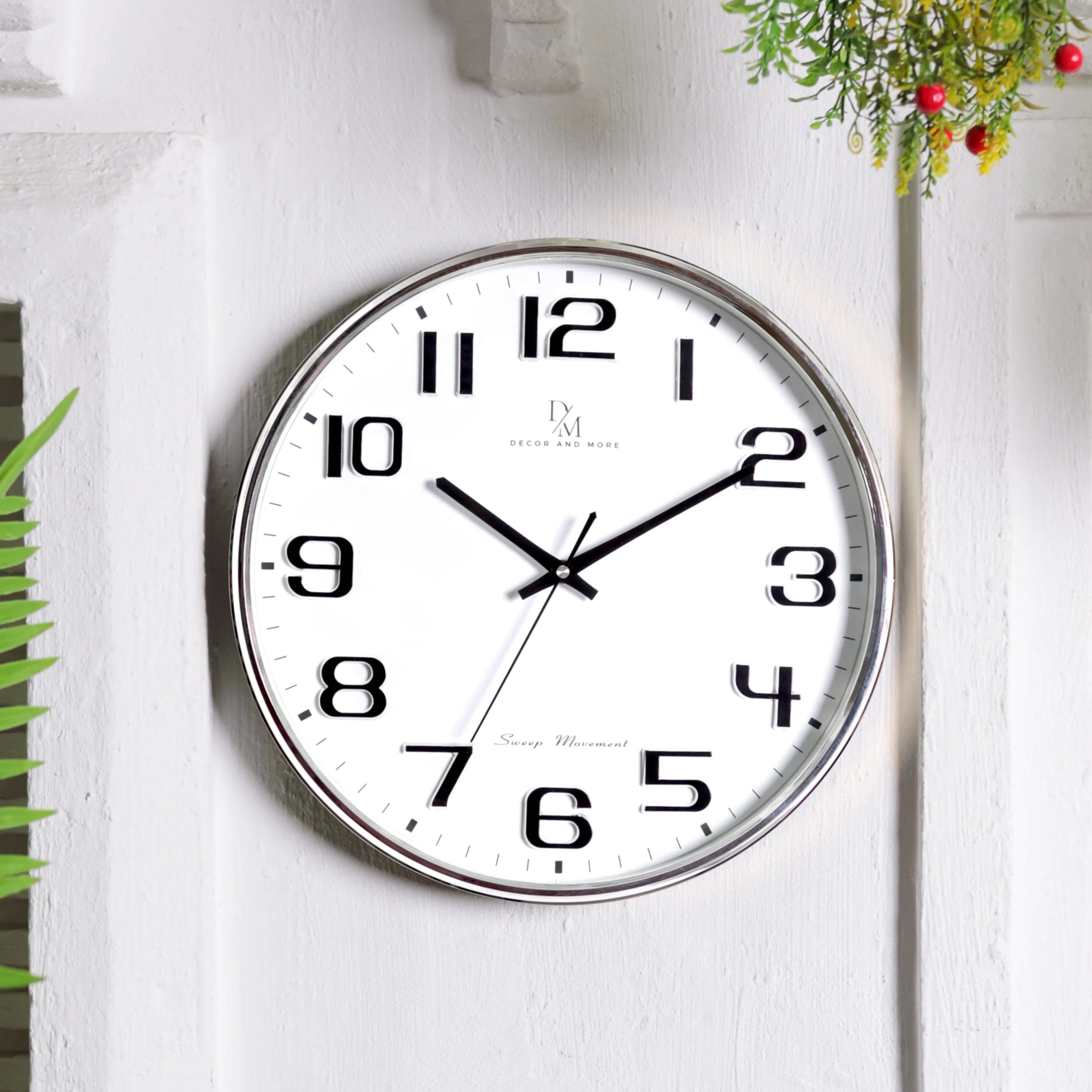 Original Imported DECOR AND MORE 14-inch Clock With 3D Digits-No Noise-Chrome Finish
