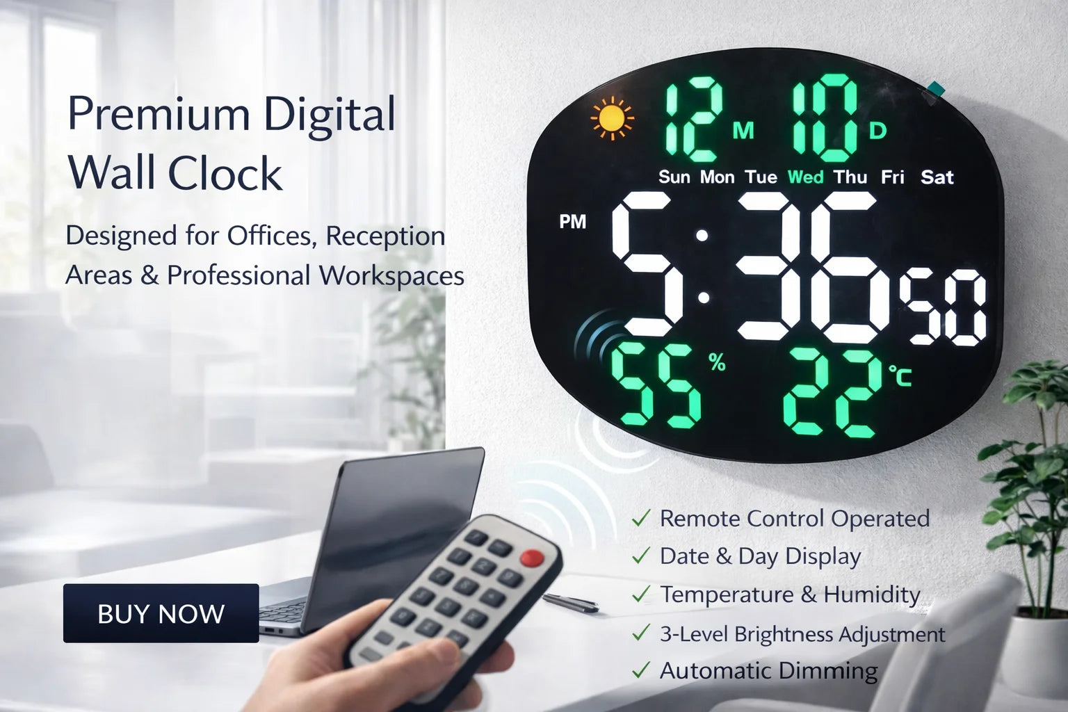 imported digital clocks, designed for clear visibility, modern style, and long-lasting performance....